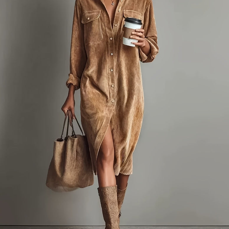 Cordalia Midi-Tunikakleid – Lockere Cord-Optik mit Brusttaschen